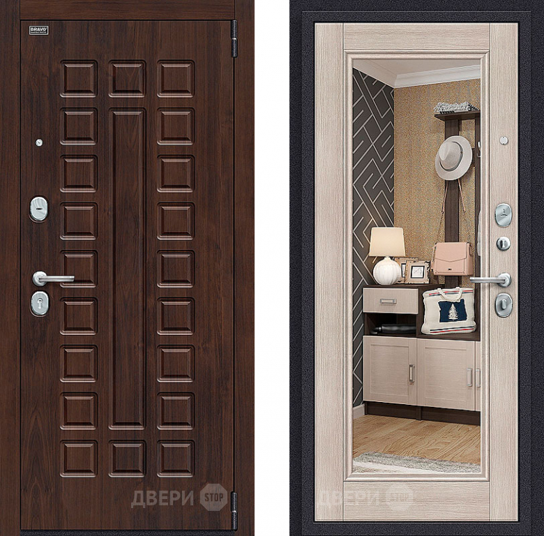 Входная металлическая Дверь Bravo Оптим Урбан с зеркалом Cappuccino Veralinga в Орехово-Зуево 860х2050 мм