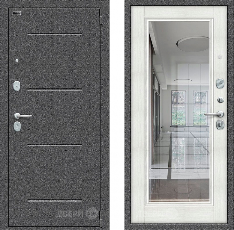 Входная металлическая Дверь Bravo Porta S-2 104/П61 с зеркалом Бьянко в Орехово-Зуево 860х2050 мм