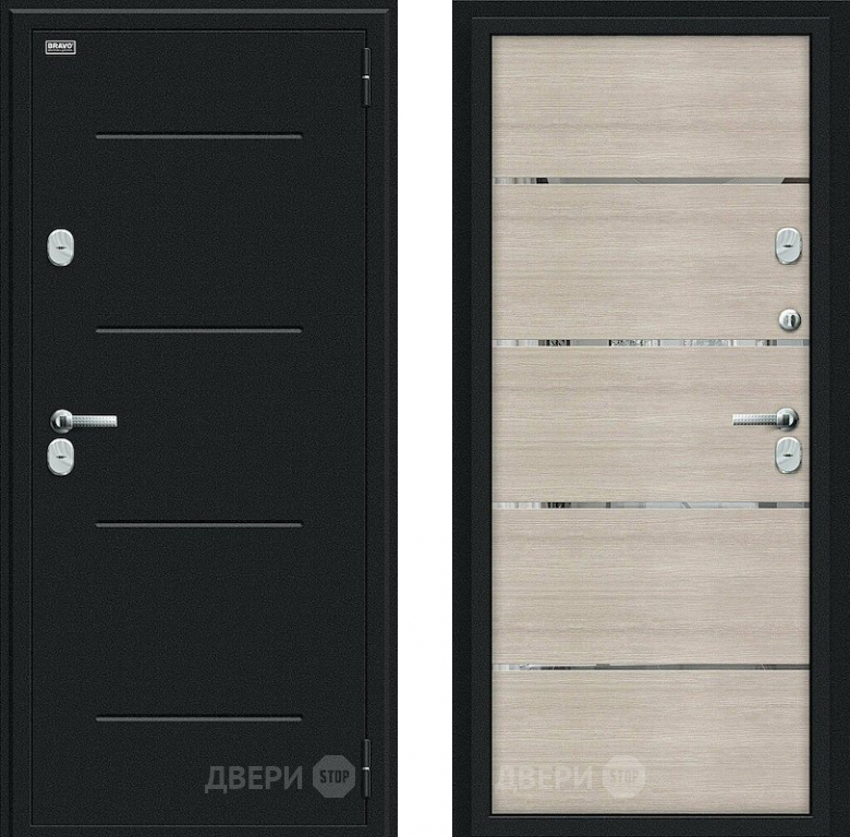 Входная металлическая Дверь Bravo Thermo Лайн Букле черное/Cappuccino Veralinga в Орехово-Зуево 860х2050 мм