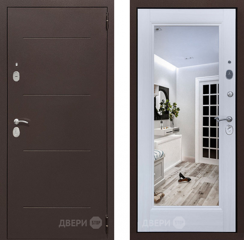Входная металлическая Дверь Престиж 100 с зеркалом Медь/Лиственница белая в Орехово-Зуево 860х2050 мм