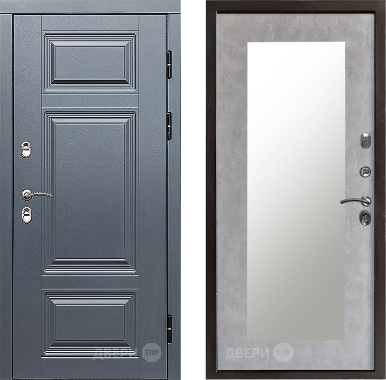 Входная Дверь Престиж TERMO с терморазрывом Премиум Грэй Зеркало пастораль Бетон светлый 860x2050 мм