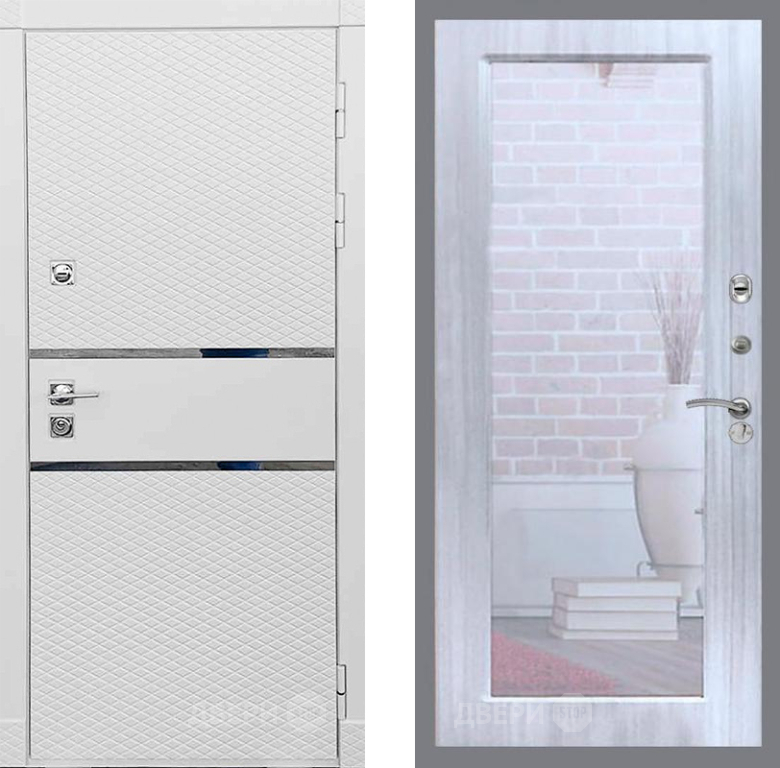 Входная Дверь Рекс (REX) 15 Силк Сноу Зеркало Пастораль Сандал белый 860x2050 мм
