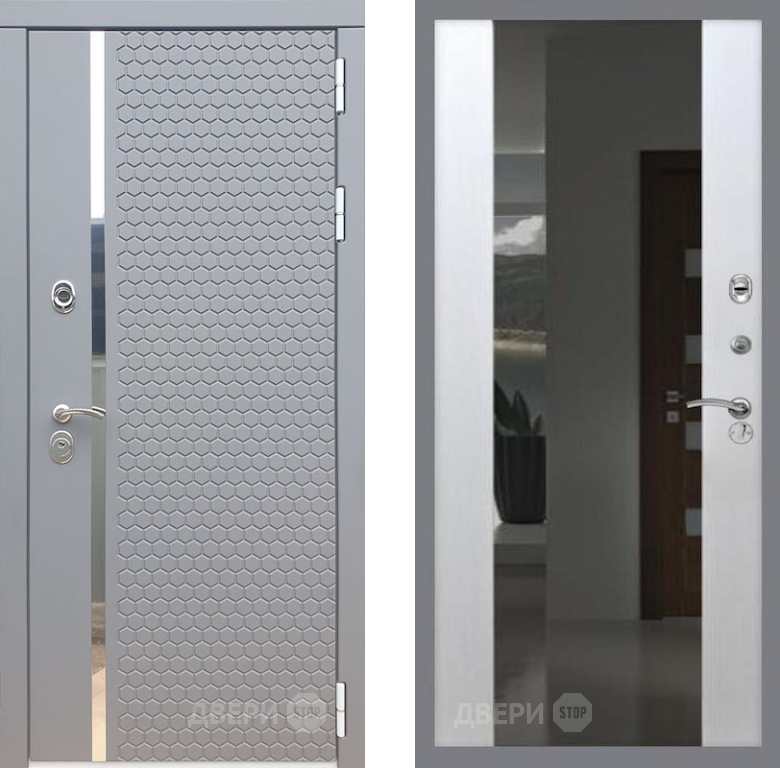 Входная Дверь Рекс (REX) 24 СБ-16 с Зеркалом Лиственница беж 960x2050 мм