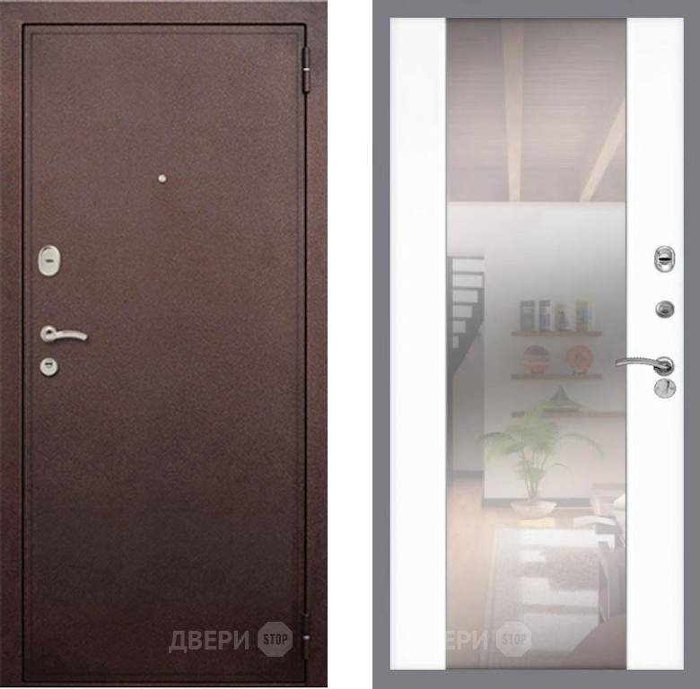 Входная Дверь Рекс (REX) 2 Медный Антик СБ-16 Зеркало Силк Сноу 860x2050 мм