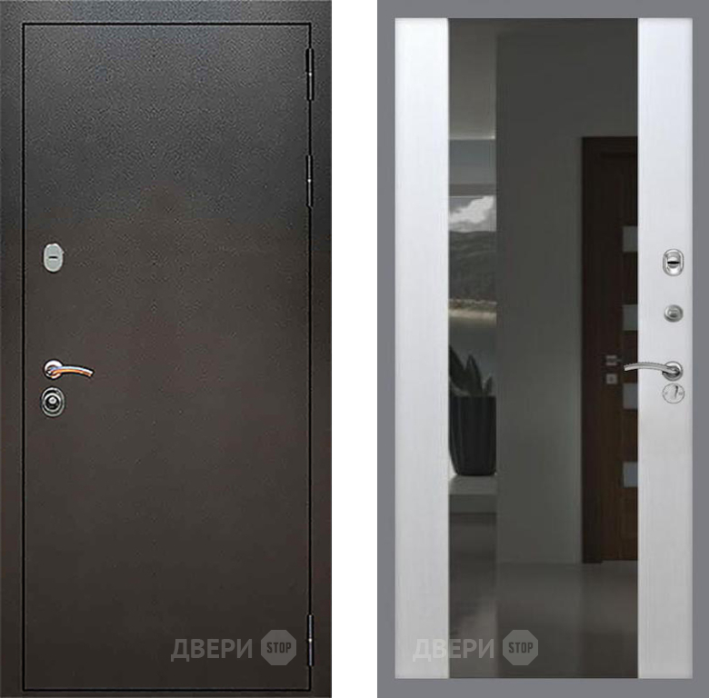 Входная Дверь Рекс (REX) 5 Серебро Антик СБ-16 с Зеркалом Лиственница беж 860x2050 мм