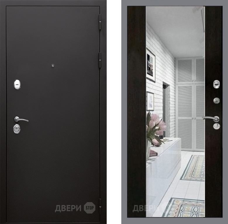 Входная Дверь Стоп КЛАССИК Шагрень Зеркало СБ-16 Венге 860x2050 мм