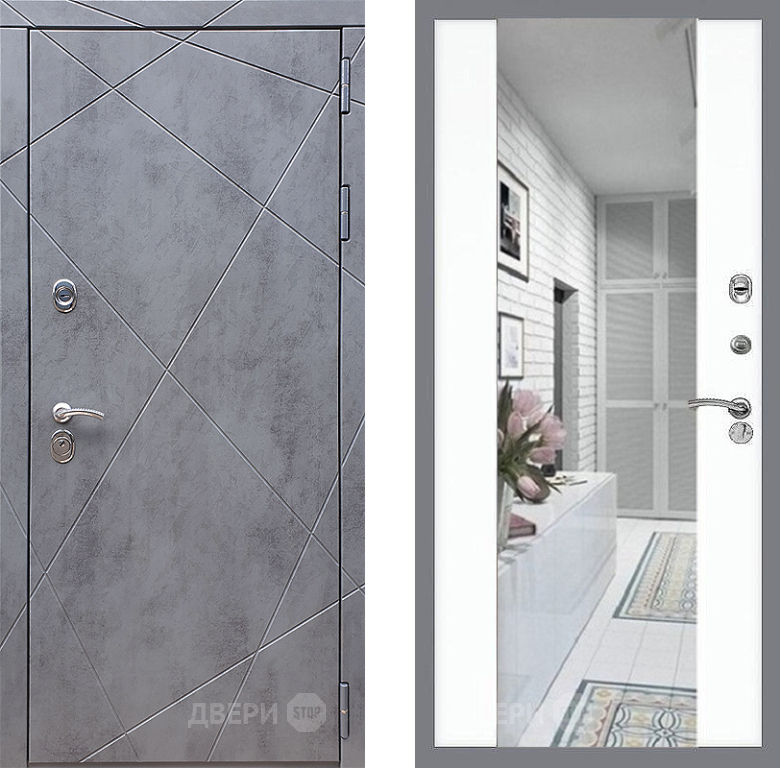 Входная Дверь Стоп Лучи Зеркало СБ-16 Силк Сноу 960x2050 мм
