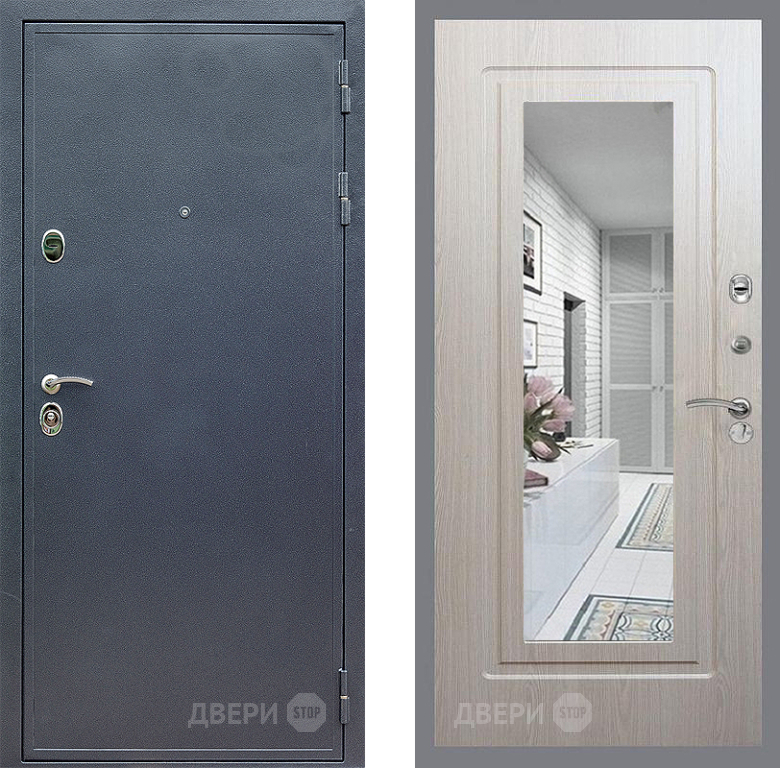 Входная Дверь Стоп СИЛЬВЕР Зеркало ФЛ-120 Беленый дуб 860x2050 мм