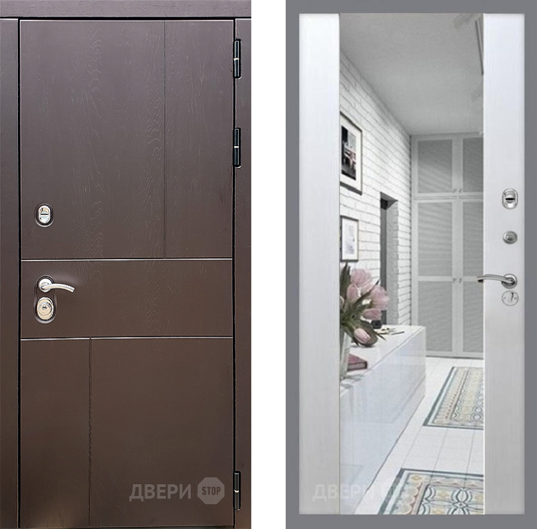 Входная Дверь Стоп УРБАН Зеркало СБ-16 Лиственница беж 960x2050 мм